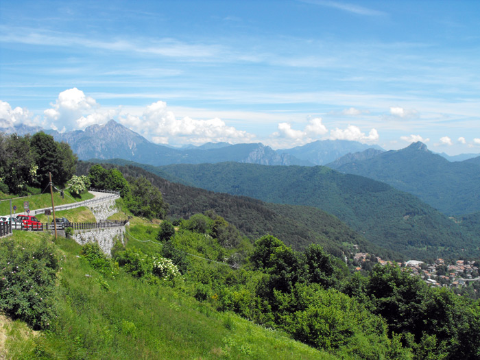 Partendo dai ristoranti vicini alle piste da sci di fondo dovete scendere verso Nesso fino ad un bivio dove troverete le indicazioni per Monti di Là e Monte San Primo.