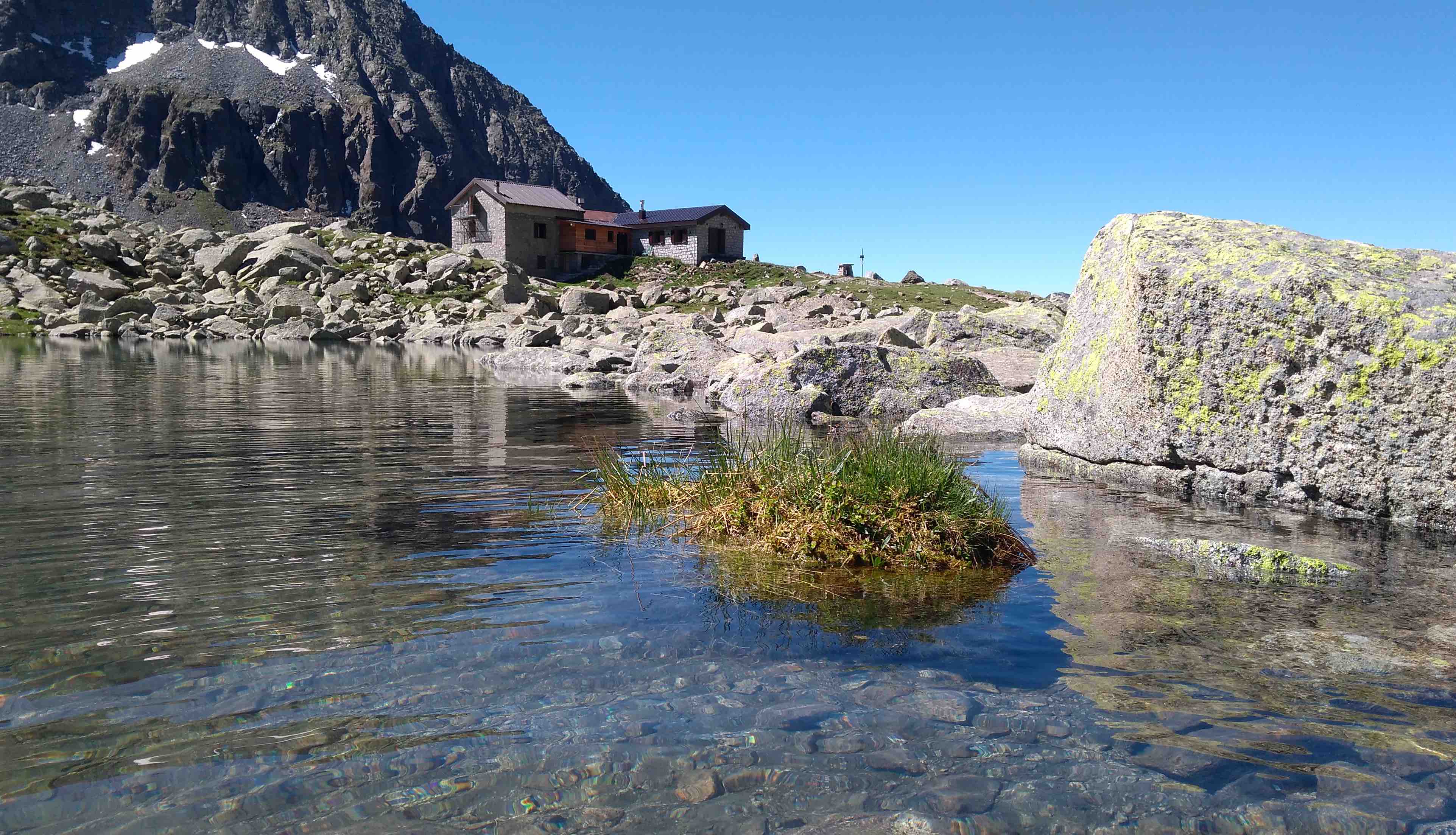 Il rifugio Tita Secchi, a 2367 metri d'altezza, è situato vicino al lago della Vacca, un lago naturale trasformato ad inizi '900 in un bacino artificiale.